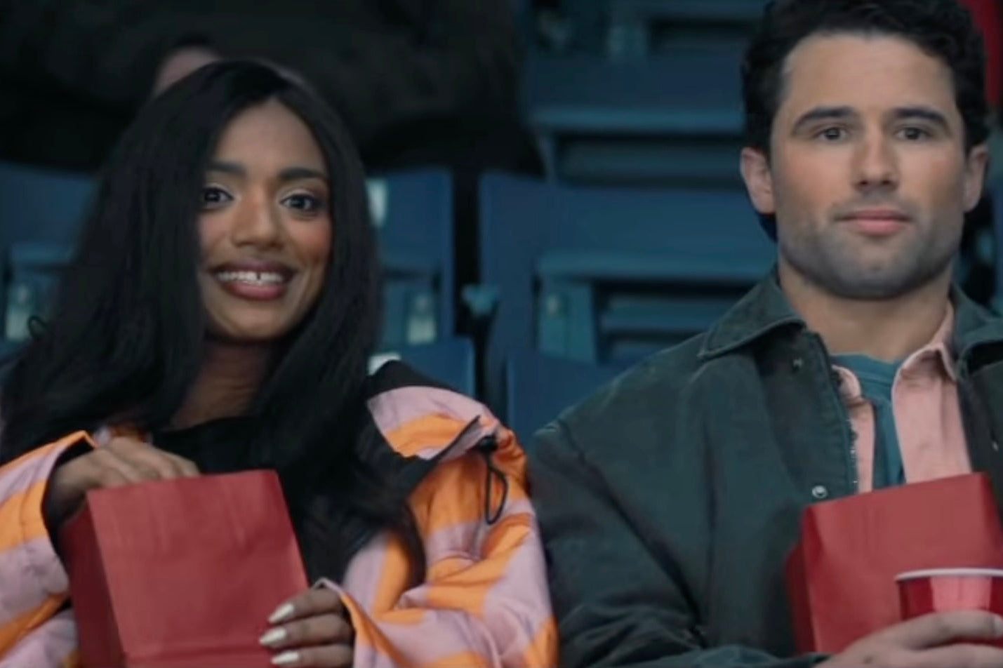 Elena (Nadine Bhabha) looks amazing wearing our St. Tropez SITTINGSUIT at the rink on Kip's (Robie G.K.) first date.