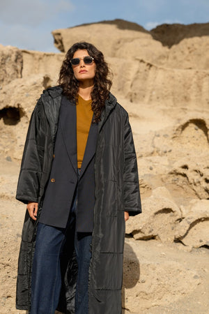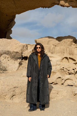 Kanten i hætten er udstyret med elastikker, der kan strammes ind efter behov. Den oversized hætte muliggør at have en frakke med hætte på indenunder, uden problemer. Således opnår du dobbelt beskyttelse imod vind og vejr!