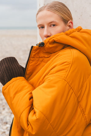 Kanten i hætten er udstyret med elastikker, der kan strammes ind efter behov. Den oversized hætte muliggør at have en frakke med hætte på indenunder, uden problemer. Således opnår du dobbelt beskyttelse imod vind og vejr!