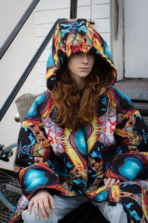 Kanten i hætten er udstyret med elastikker, der kan strammes ind efter behov. Den oversized hætte muliggør at have en frakke med hætte på indenunder, uden problemer. Således opnår du dobbelt beskyttelse imod vind og vejr!