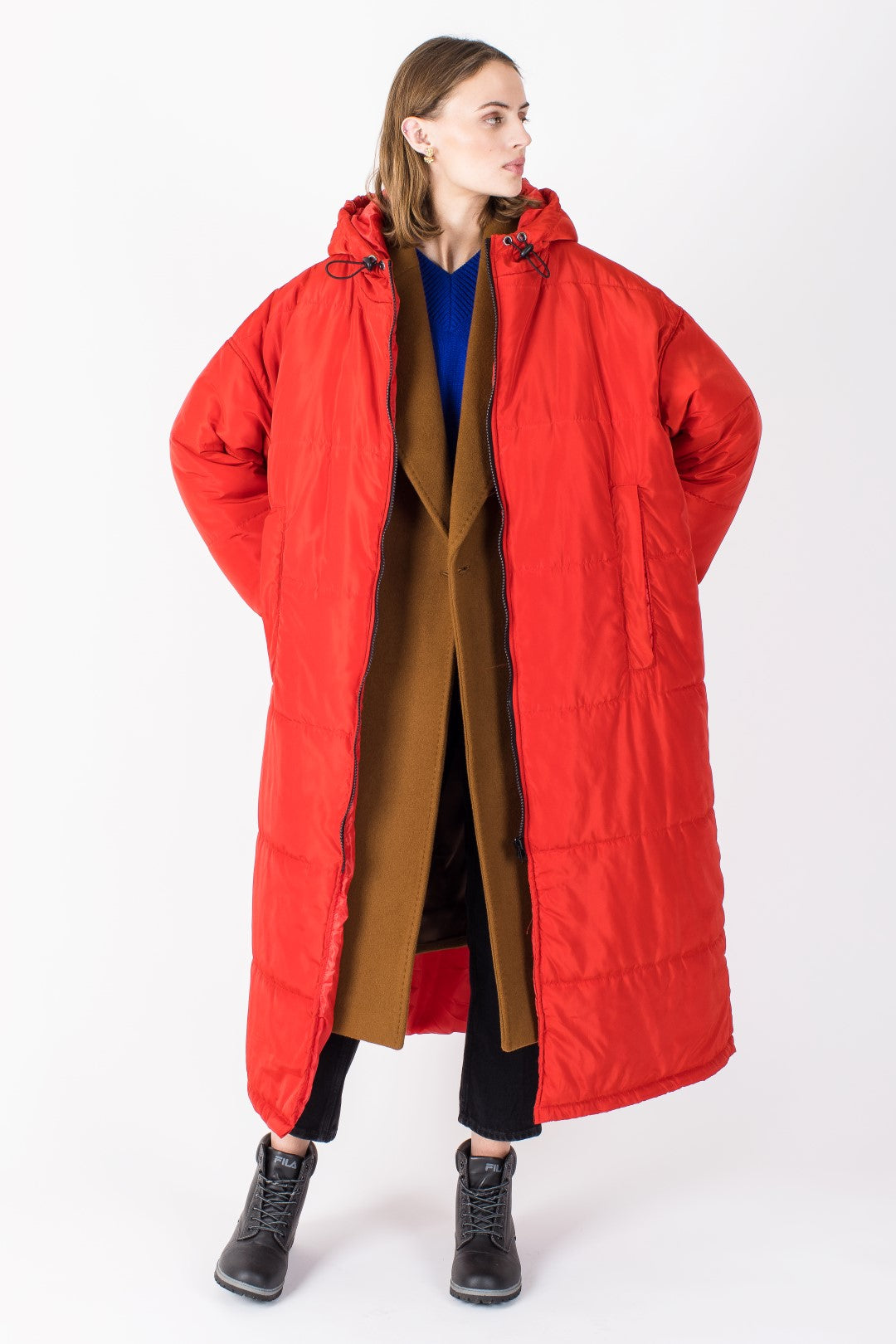 Kanten i hætten er udstyret med elastikker, der kan strammes ind efter behov. Den oversized hætte muliggør at have en frakke med hætte på indenunder, uden problemer. Således opnår du dobbelt beskyttelse imod vind og vejr!